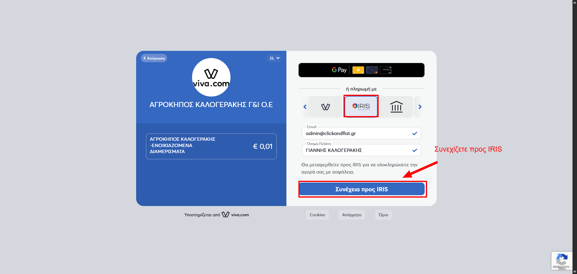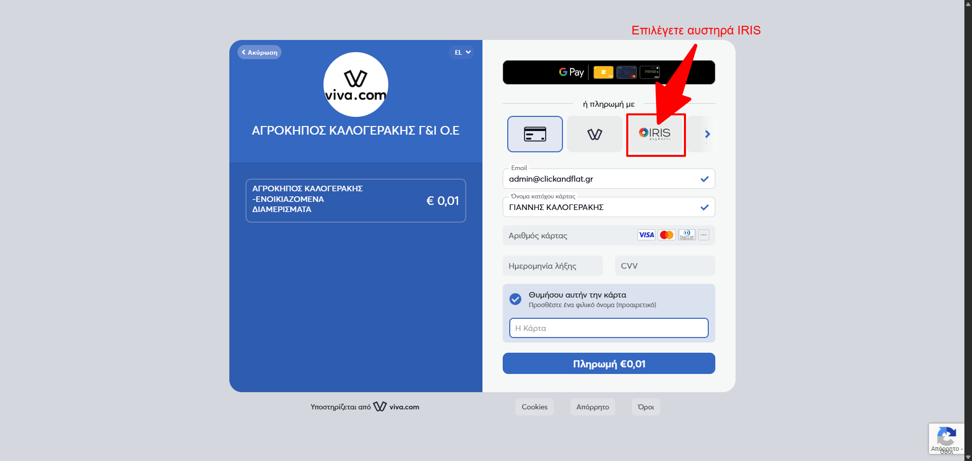 Θα επιλέγετε αυστηρά πληρωμή με IRIS .